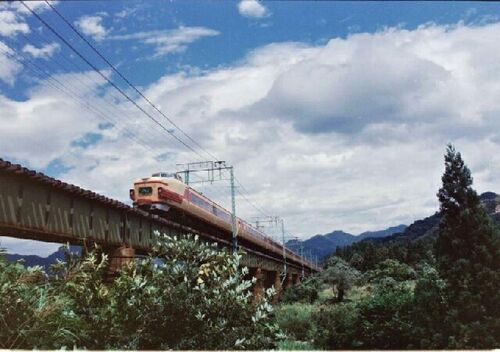 台風一過の上越国境を行く181系「とき」 いわゆる「こだま型」のこの電車、 東海道本線特急用の基本設計から 上越、信越線運用対応に 勾配対策、耐寒耐雪装備を大掛かりに強化改装。 当初の東海道「こだま」での活躍は 6年で新幹線にバトンを渡したが、 「と…