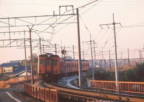 夕陽に輝くタラコカラーw たまに飛沫がwww飛んできたこの頃の八高線。 最大6連で走っていたが、 今は キハ110が2~3両で・・ 八高線上り列車 北藤岡~倉賀野 1979