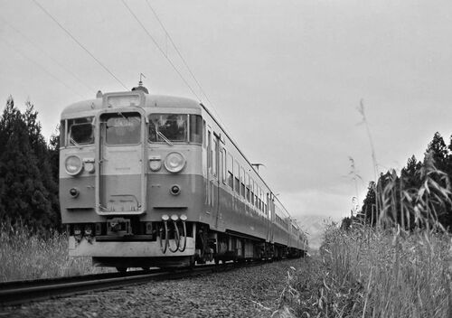 455系急行「ばんだい」。上野から「ざおう」「まつしま」などと併結で、 郡山で分割、磐越西線へ。 特急「あいづ」のフォロー役だった。 磐越西線・翁島付近 1979