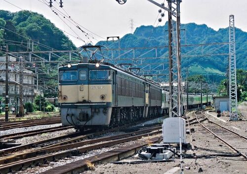 上越新幹線に高速度分岐器挿入運休で 「新幹線リレー」に入った489系。 遠い日の「はくたか」運用を思い出しているのだろうか。。 上越線・津久田~岩本 1995