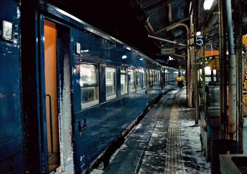 函館本線客レ旅。 ♪凍りついた線路は今日も~ぉ♪♪ 荷物車の方が旅客車より多い編成だったなぁ。。 1985