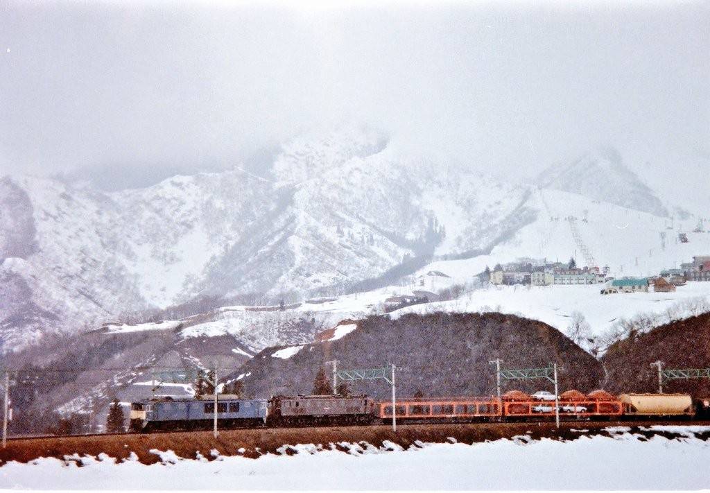 2025-06-12 懐かしリーズ vol.3441 #旅行、交通 #鉄道、列車 ネタ枯渇対策w 思い出の・・ 上越線沿線ロケ EF16運用に入った「カッコ良すぎる仇役」。 今や、 稲沢に追われた「国鉄最終兵器」も 引退間近とかで。。 (T_T)(T_T) 上越線・越後中里〜岩原スキー場前 1981